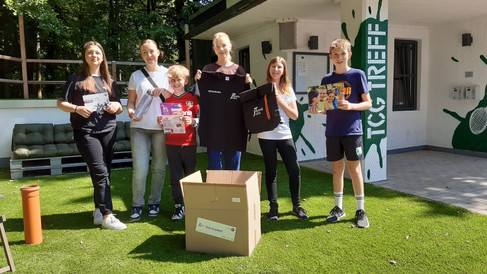 In unserem Verein haben 15 Jugendliche Interesse bekundet sich im Verein zu engagieren und ein J-Team zu gründen. Unser Antrag wurde von der Sportjugend NRW genehmigt und so wurde uns gestern von Britta Busch vom Westfälischen Tennisverband (WTV) und Kristine Fassnacht von Stadtsportbund Dortmund das Starterpaket übergeben. Dieses beinhaltet neben J-TEAM – T-Shirts, Trinkflaschen, Rucksäcke, einen Workshop Gutschein für „kreativ teamworken“, Informationen und Materialien auch 200,- Euro Startkapital für ein erstes Projekt.
