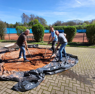 Viele Helfer beim Arbeitseinsatz bei schönstem Tenniswetter